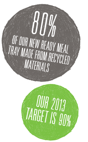 In conjunction with one of our strategic packaging suppliers we have developed and launched the first ready meal oven tray that is made from 80% recycled materials and is also fully recyclable. Our target is to increase the amount of recycled material to over 90% by 2013.